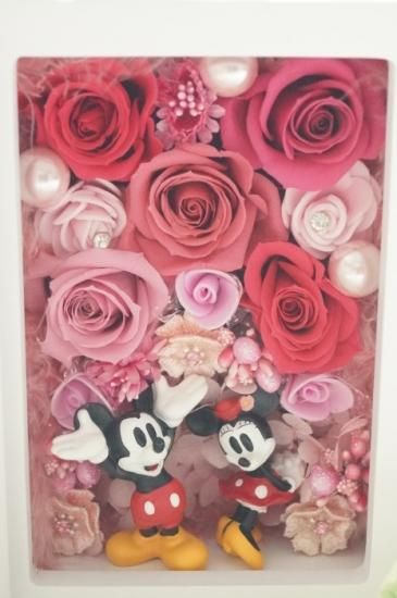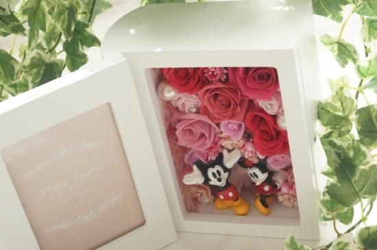 選べるカラー フォトフレーム・ミッキー&ミニー 母の日の贈り物 プリザーブドフラワーアレンジメント プレゼント 還暦祝い P-24