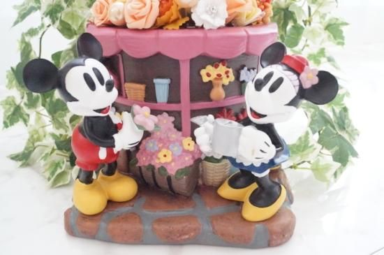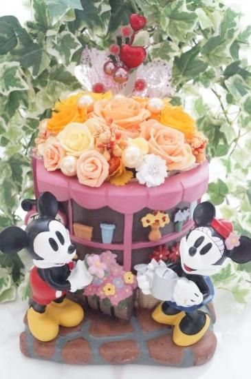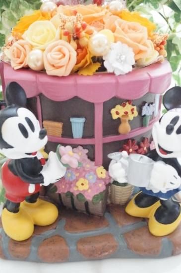ミッキーマウスとミニーマウスのお花屋さん 大きなアレンジメント 電報 誕生日 お礼 お祝いなどにも プリザーブドフラワー M-611