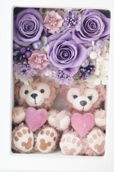 選べるカラー ダッフィー シェリーメイ フォトフレーム プリザーブドフラワー 誕生日プレゼント 新築祝い 母の日の贈り物 P-93