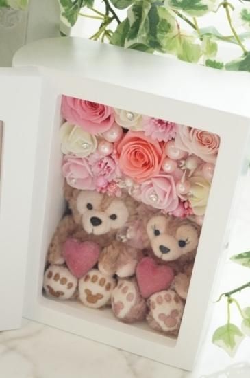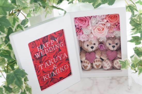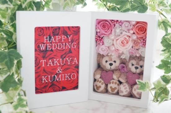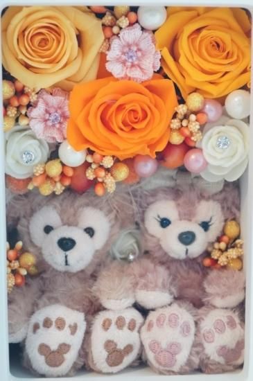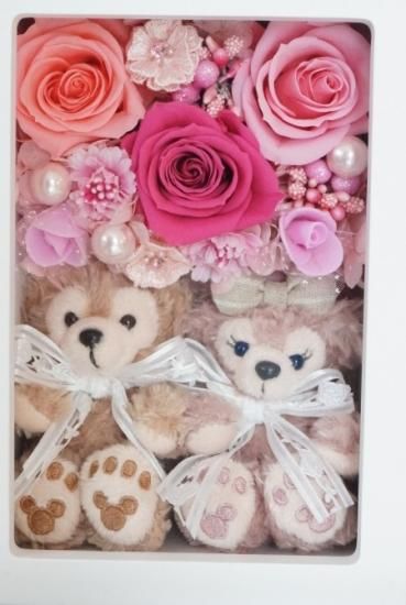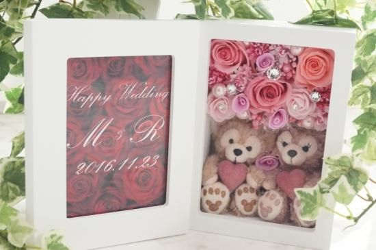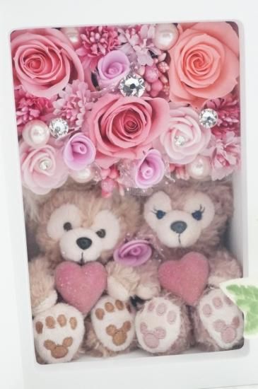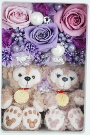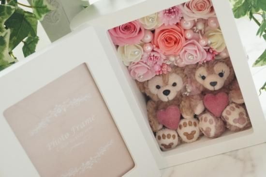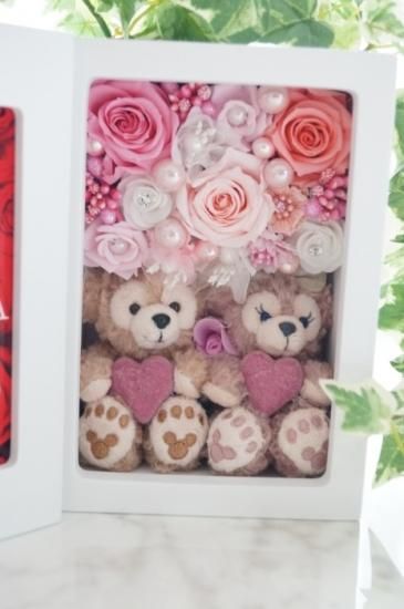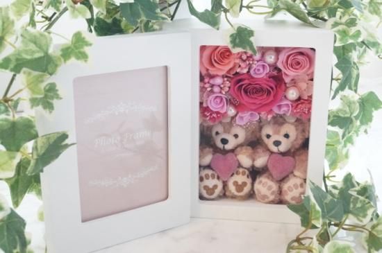 選べるミックスカラー ダッフィー&シェリーメイ フォトフレーム プリザーブドフラワー 花 ギフト 母の日 還暦祝い 内祝い お返し P-56