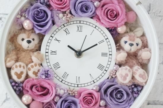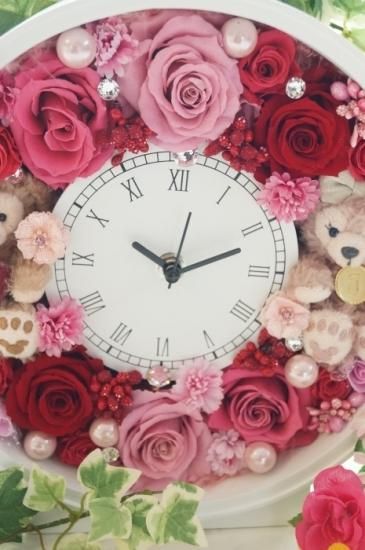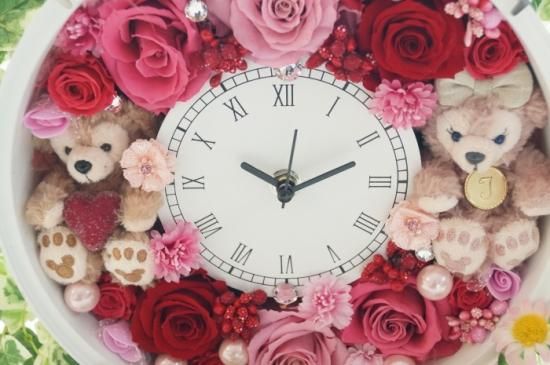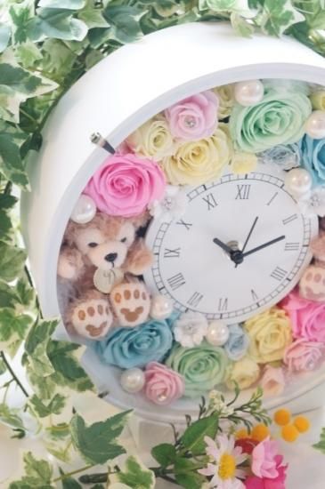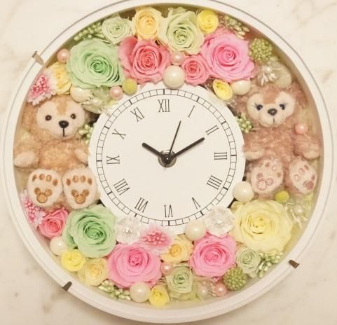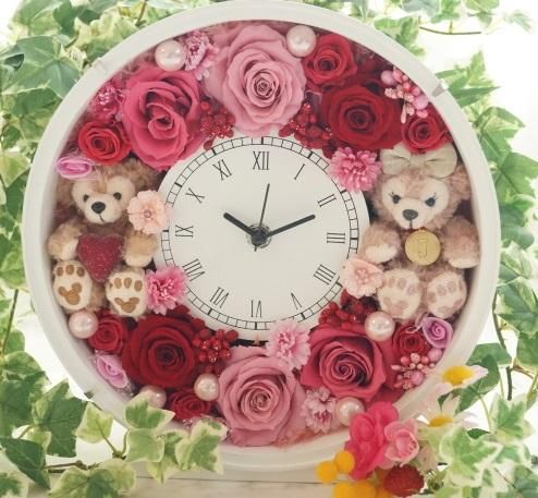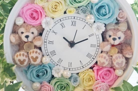 選べるカラー ダッフィー シェリーメイ 結婚祝い 時計 プリザーブドフラワー プレゼント 結婚記念日 入籍祝い 退職祝い GR-93