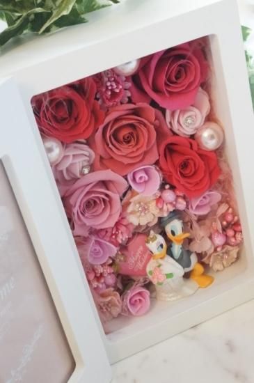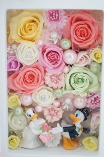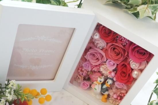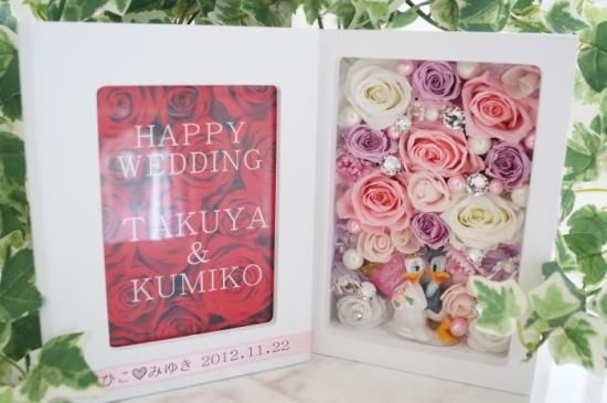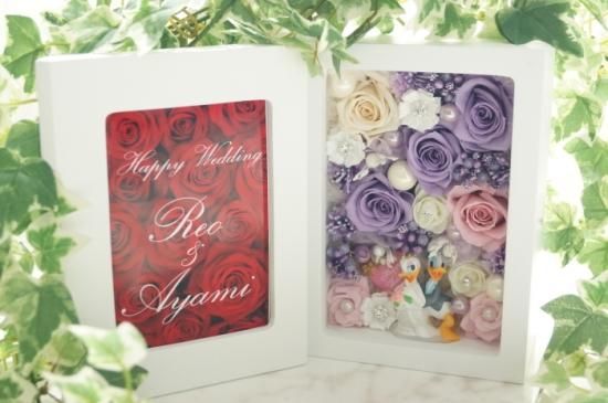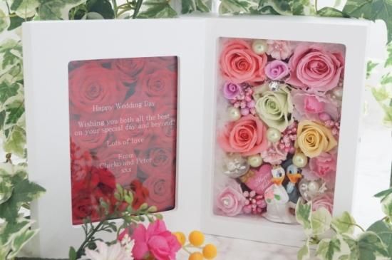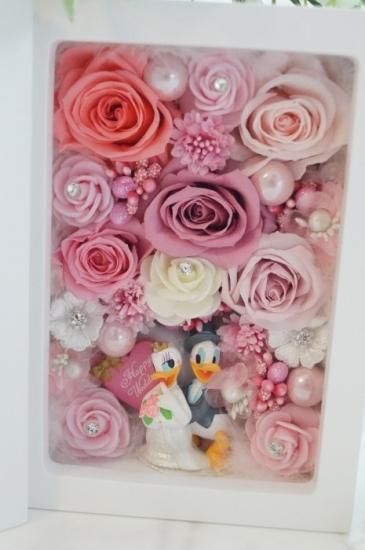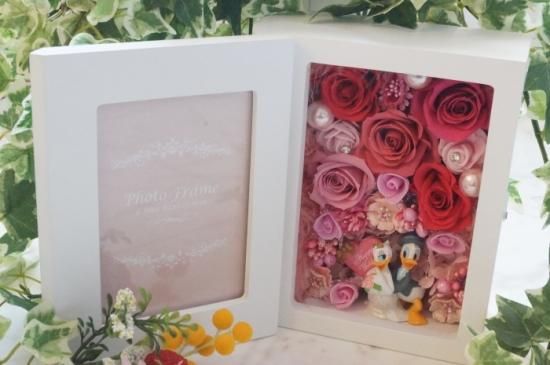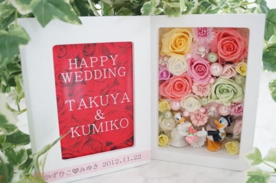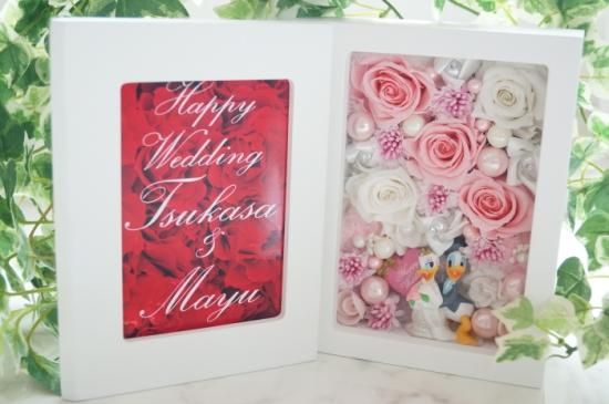 選べるカラー ウェディングギフト フォトフレーム ドナルド&デイジー プリザーブドフラワー 写真立て 結婚祝い 結婚記念日 P-33