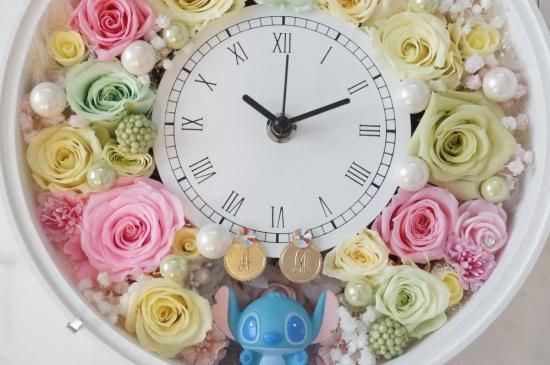 選べるスティッチ&カラー 花時計 プリザーブドフラワーアレンジメント 誕生日プレゼント 新築祝い ウェディグケーキ フラワーボックス GR-22