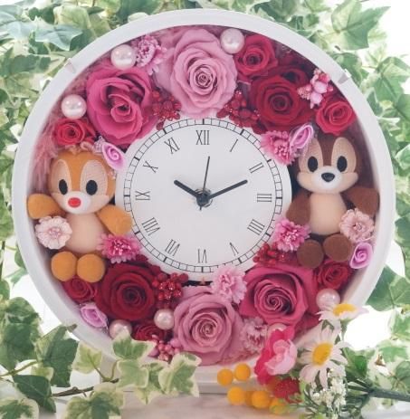 選べるカラー チップ&デール 花時計 プリザーブドフラワー 花 ギフト 還暦祝い 置時計 壁掛け時計 新築祝い GR-62