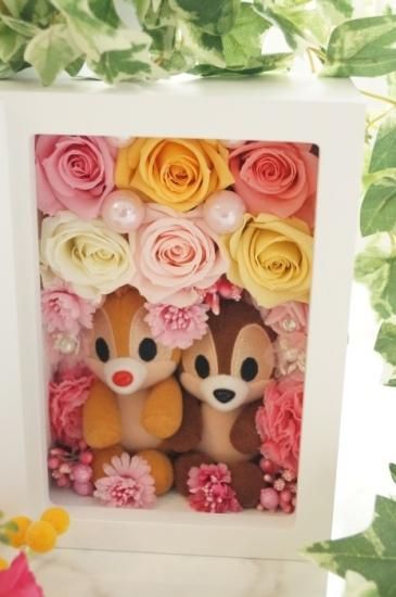 選べるミックスカラー チップとデール フォトフレーム プリザーブドフラワー 枯れない花ギフト ウェディングギフト 両親 ブライダル 結婚式 プロポーズ P-623