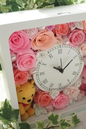 選べるカラー くまのプーさん プリザーブドフラワーギフト 花時計 ウェディングギフト 結婚式 両親 花束 プレゼント T-82