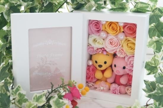 選べるミックスカラー くまのプーさん プリザーブドフラワー フォトフレーム 枯れない花ギフト ウェディングギフト 両親 ブライダル 結婚式 プロポーズ P-88