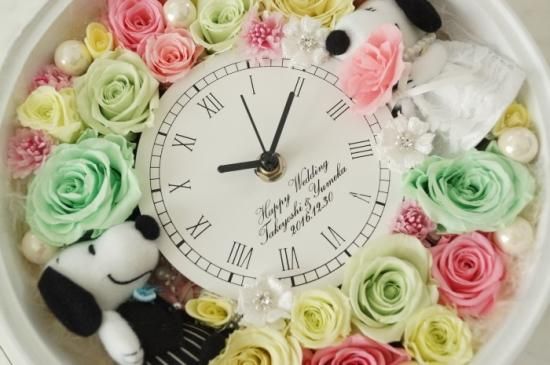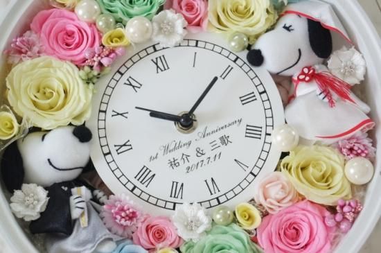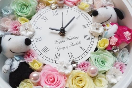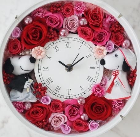 スヌーピーの花時計 プリザーブドフラワー プレゼント 結婚祝い 結婚記念日 入籍祝い 退職祝い 花 ギフト GR-45