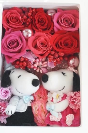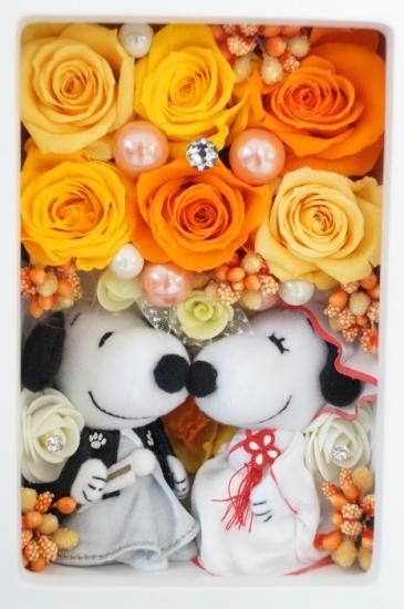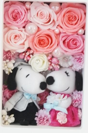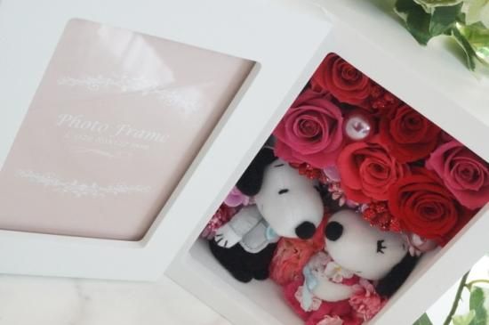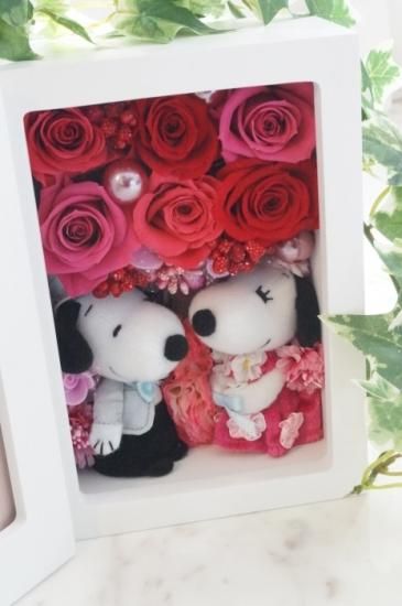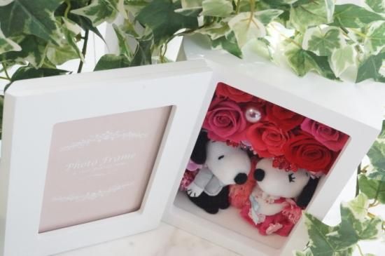 選べるカラー ウェディング スヌーピープリザーブドフラワー フォトフレーム 結婚祝い 結婚記念日 写真立て 花 ギフト P-45