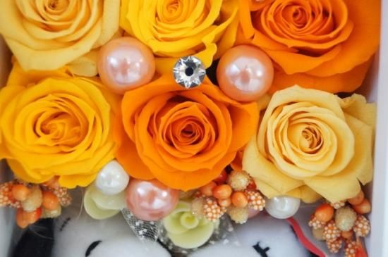 生花や葉を特殊液の中に沈めて、水分を抜いた素材のことです。