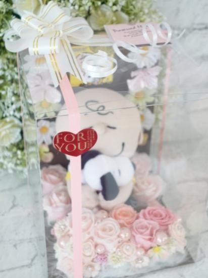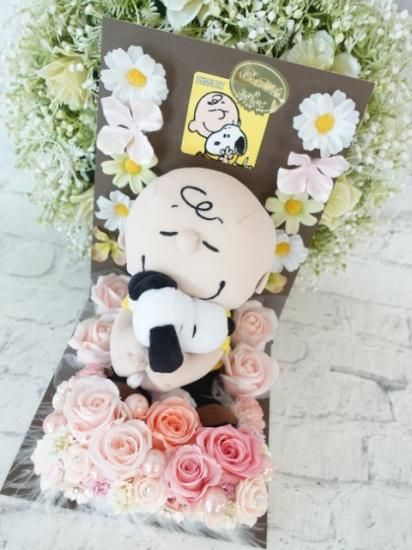 選べるカラー スヌーピーとチャーリーブラウン プリザーブドフラワーアレンジメント 花束 M-76