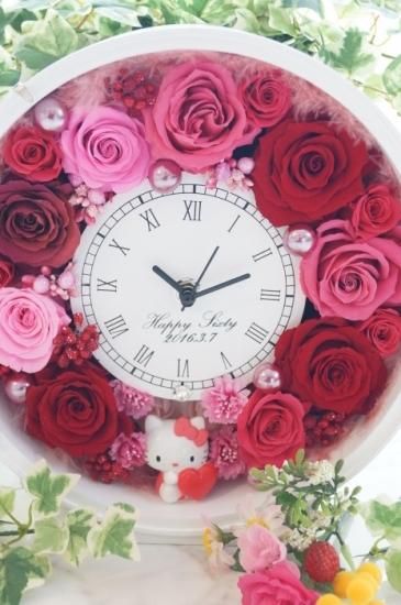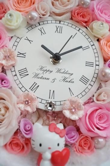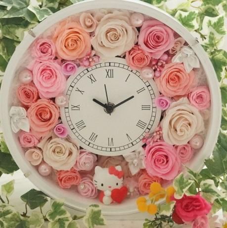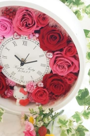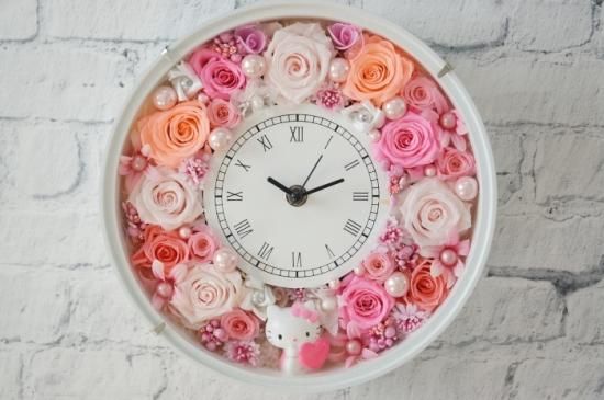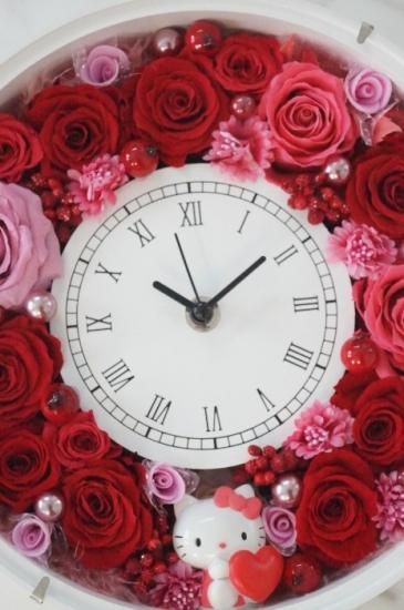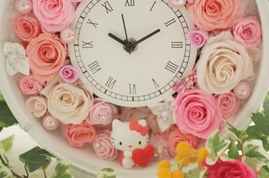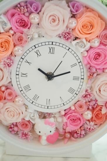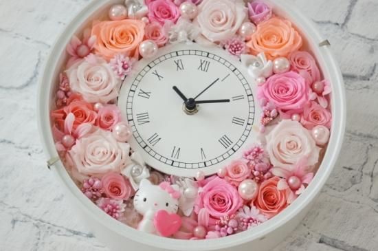 選べるカラー ハローキティの花時計 プリザーブドフラワー プレゼント 結婚祝い 結婚記念日 入籍祝い 退職祝い GR-52