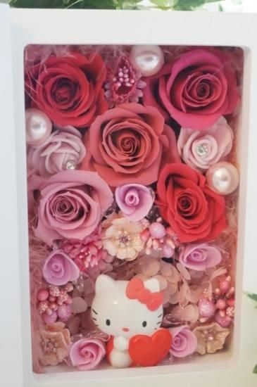 選べるカラー ハローキティ フォトフレーム プリザーブドフラワーアレンジメント 枯れない花束 ギフト P-52