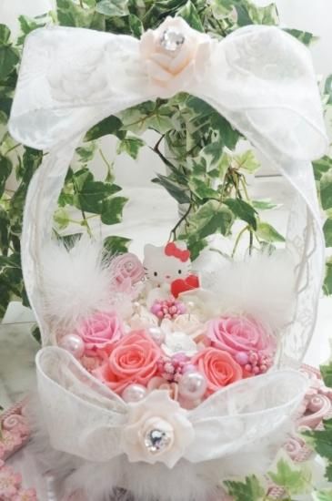 選べるカラー ハローキティ プリザーブドフラワー リングクッション リングピロウ リボン ウェディングアイテム ブライダルギフト 花ギフト RW-52