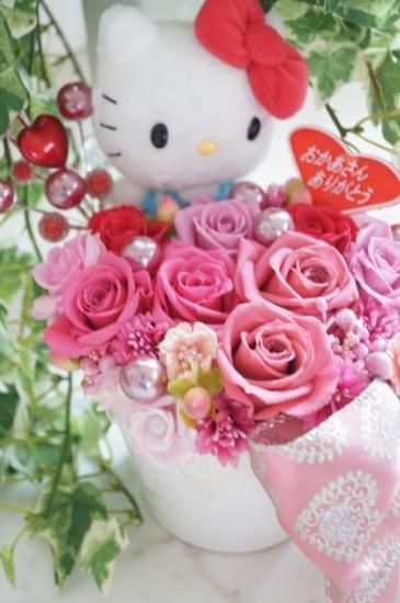 選べるカラー&ピック キティ プリザーブドフラワー 花束ギフト プレゼント 母の日 還暦祝い RA-74