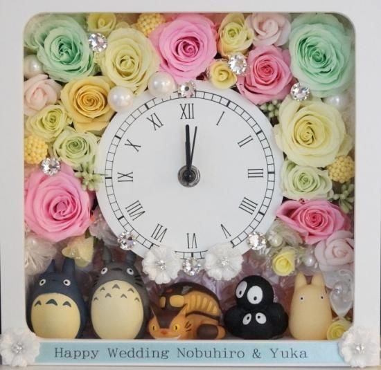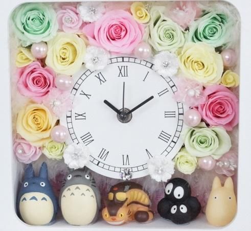 選べるカラー となりのトトロ花時計 壁掛け時計 置き時計 プリザーブドフラワーアレンジメント 還暦祝い 結婚式贈答品 結婚祝い プレゼント T-6