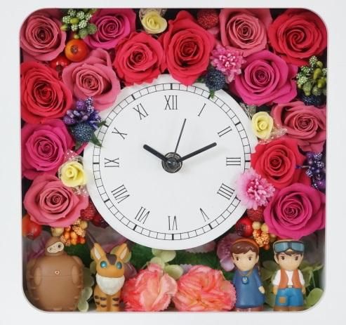 選べるカラー 天空の城ラピュタ 花時計 壁掛け時計 置き時計 プリザーブドフラワーアレンジメント 還暦祝い 結婚式贈答品 結婚祝い プレゼント T-35