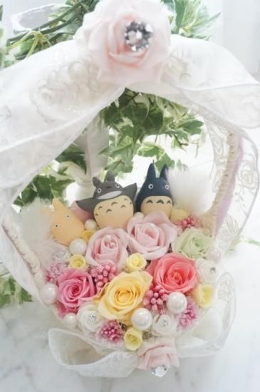 選べるカラー トトロ リングピロー リングクッション 結婚式 結婚祝い プレゼント スワロフスキー付 プリザーブドフラワー RW-91