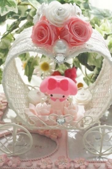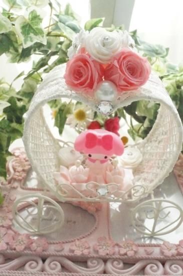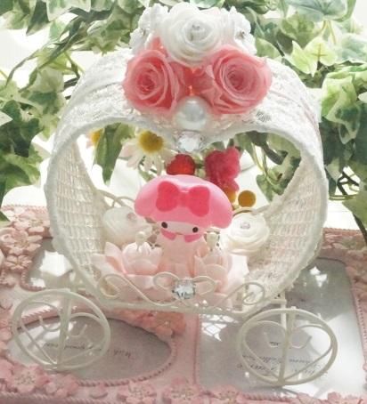 マイメロディ 名前・記念日入れ付き プリザーブドフラワー カボチャの馬車リングピロー リングクッション 結婚式 花束・誕生日・退職祝い・お礼 BB-70