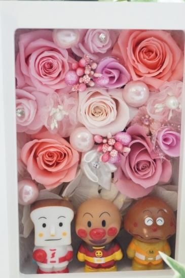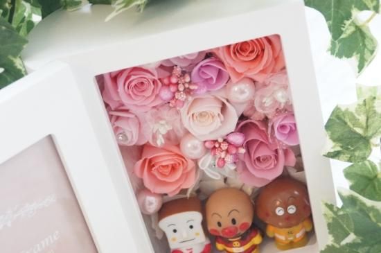 選べるカラー アンパンマン 写真たて フォトフレーム プリザーブドフラワーアレンジメント 枯れない花束 ギフト P-46