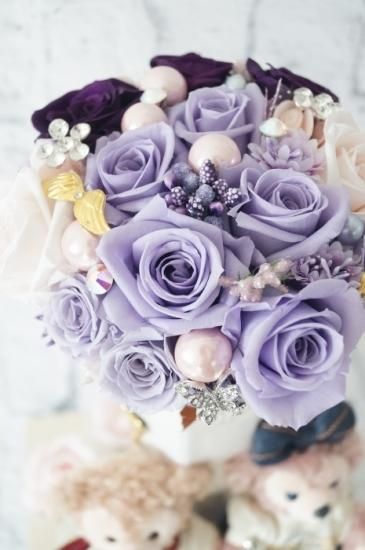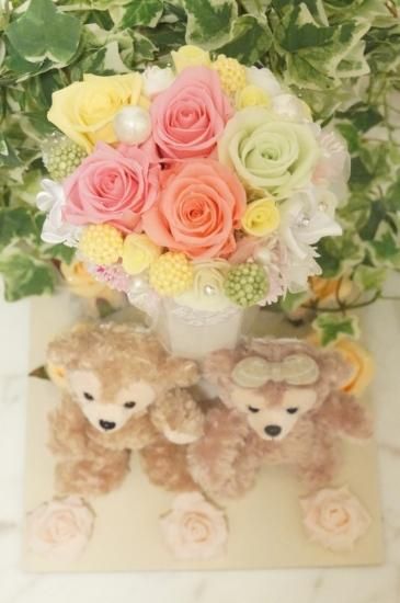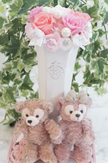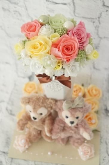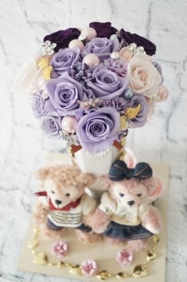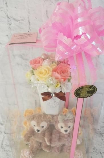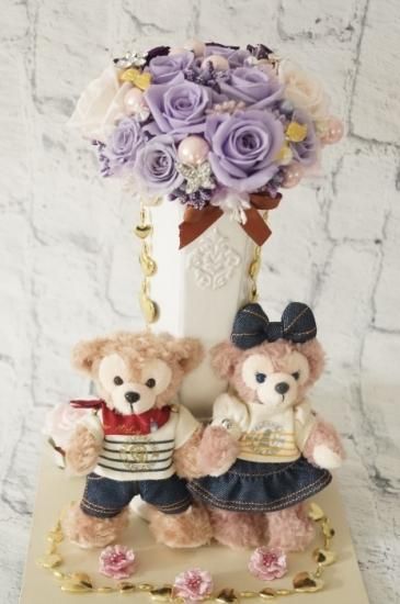 選べるカラー ダッフィーとシェリーメイ プリザーブドフラワー 花束ギフト プレゼント LL-64