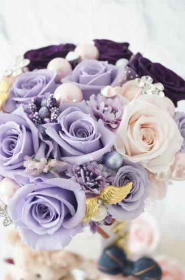 *パープル(紫)のアレンジの見本写真は豪華オプション+2000円のアレンジとなっております。