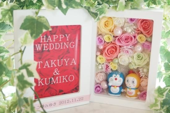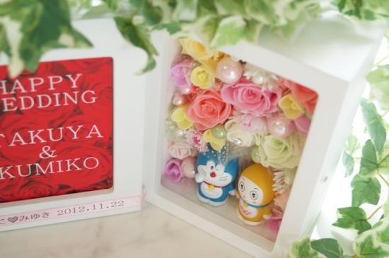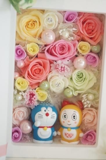 選べるカラー ドラえもん ドラミちゃん フォトフレーム プリザーブドフラワーアレンジメント 枯れない花束 ギフト P-306