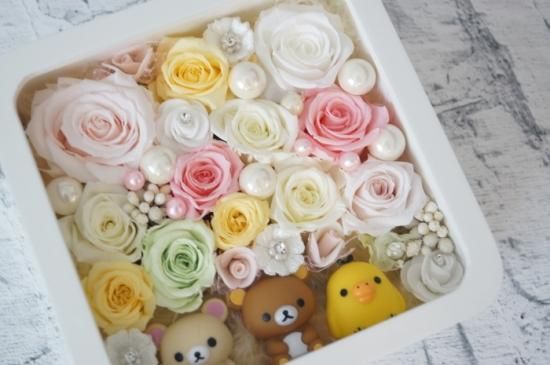 選べるカラー リラックマ フラワーボックス プリザーブドフラワー 花束 壁掛けアレンジメント 祝電 電報 WB-89