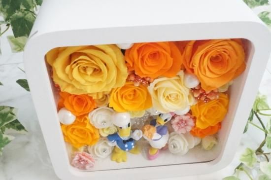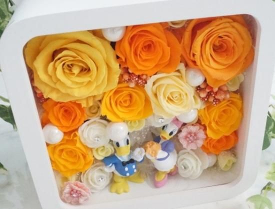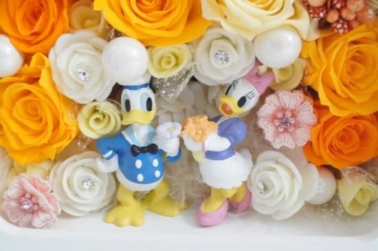 選べるカラー ディズニー ドナルドとデイジー フラワーボックス プリザーブドフラワー 花束 壁掛けアレンジメント 祝電 電報 WB-35