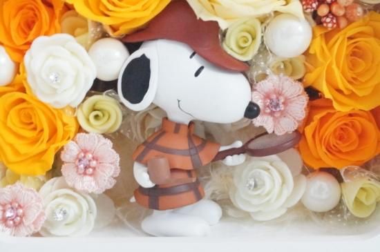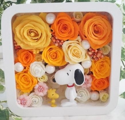 選べるカラー スヌーピー(ベル・ウッドストック)フラワーボックス プリザーブドフラワー 花束 壁掛けアレンジメント 祝電 電報 WB-13