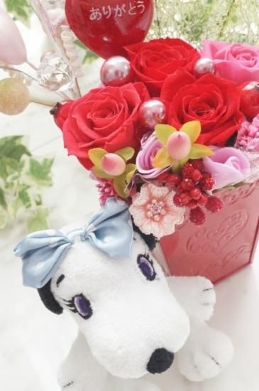 選べるカラー&ピック ベル(スヌーピー)の花束 プリザーブドフラワー ギフト 母の日 誕生日プレゼント お祝い お悔み 仏花 AKB-762