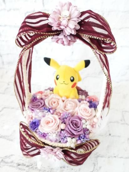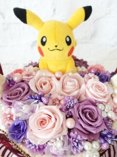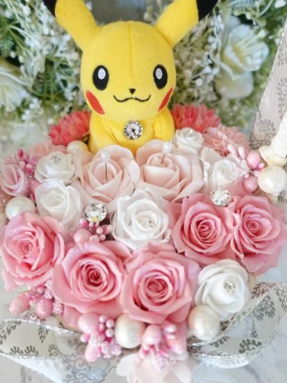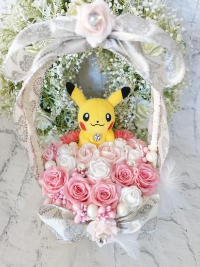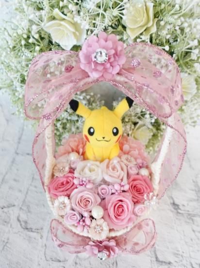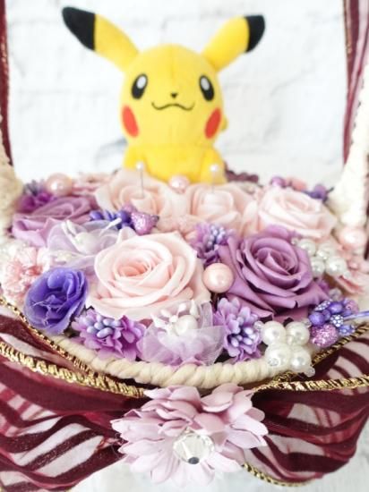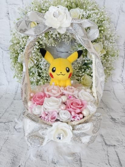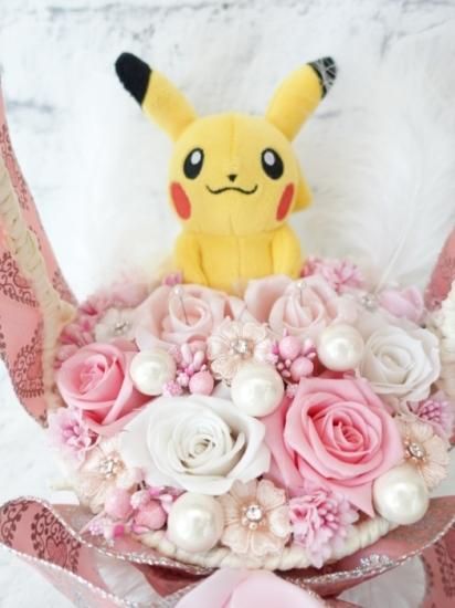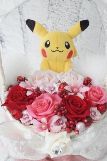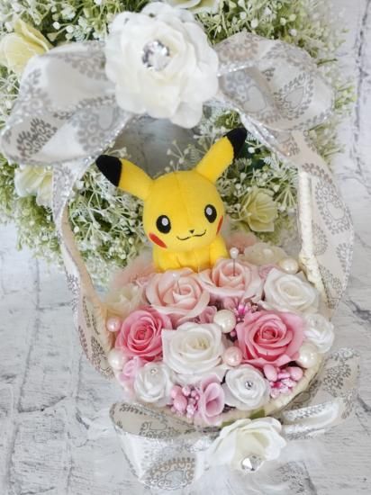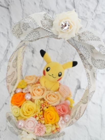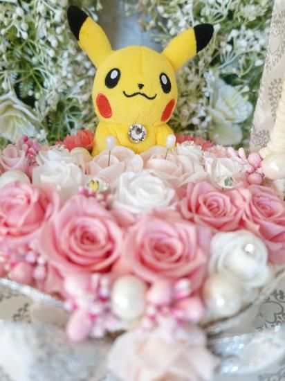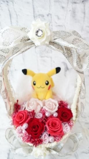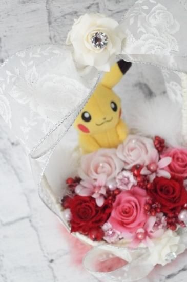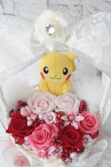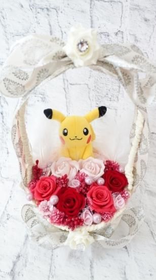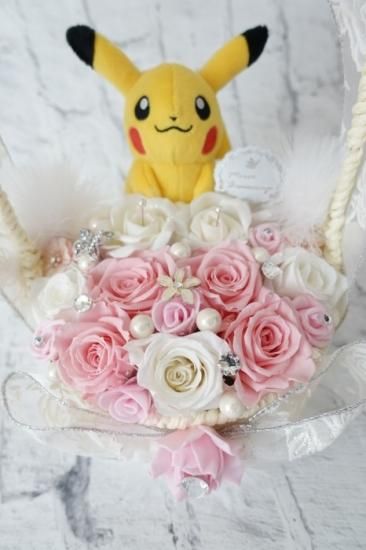 ピカチュウ プリザーブドフラワー 結婚式 リングクッション 指輪置き リングピロー 花束ギフト プレゼント RWK-40
