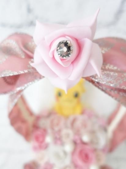 使用花材:ピン、フェアリーピック、パールピック、リボン、スワロフスキー(約1センチ2個)