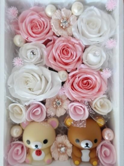 ◆プリザーブドフラワーとは?◆ 生花や葉を特殊液の中に沈めて、水分を抜いた素材のことです。 Preserved flowers という言葉から、日本ではプリザーブドフラワーという言葉が一般的になりました。 水を与える必要がなく、イベント等に向いています。 生花のような短期劣化はないことで、長期に渡ってインテリアとしても楽しめます。 生きた植物と比べても遜色のない、瑞々しい質感と柔らかさがあり軽く、保存環境が良ければ数年もちます。 花粉アレルギーの心配が無いのもプレゼントとして人気です。 ◆ソープフラワーとは?◆ ソープフラワー(シャボンフラワー)は石鹸で作られているお花のことです。 本物のお花と見間違えるほど繊細にリアルに作られています。 ほのかに石鹸のアロマが香る華やかな新しいタイプの造花です。 生花やプリザーブドフラワーよりもお手頃価格でお求めいただけ、 また華やかなのでプレゼントとして人気が高まってきています。 お手入れ不要、いい香り、きれい長持ち、軽いので持ち運びに便利、 ボリューム感◎と自分の観賞用、お店や自宅のインテリア、記念品、プレゼントにおすすめです。 *当店のお花は入浴剤としてはお使いいただけません為、観賞用としてお楽しみください。 香りが薄れたら、アロマオイルなどで香りをまた楽しむことができます。 ![]() ![]() ![]() ..... ![]() ![]() ![]() ![]()