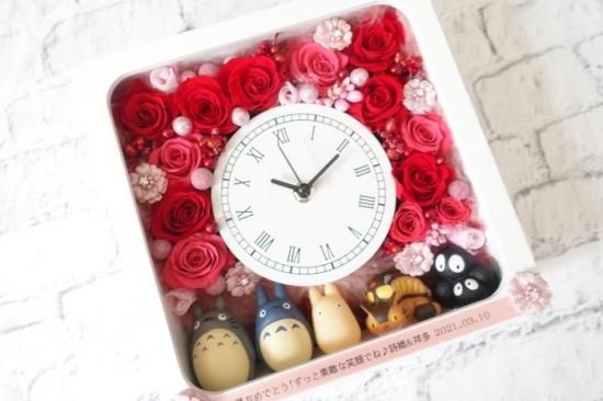選べるカラー となりのトトロ花時計 壁掛け時計 置き時計 プリザーブドフラワーアレンジメント 還暦祝い 結婚式贈答品 結婚祝い プレゼント TK-6