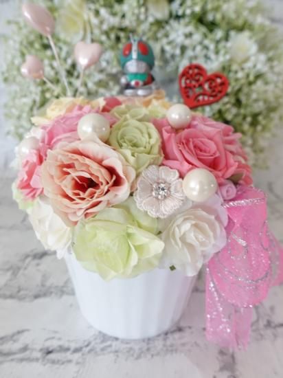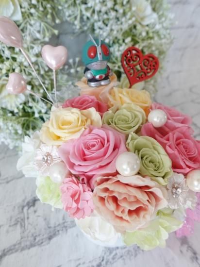 ◆プリザーブドフラワーとは?◆ 生花や葉を特殊液の中に沈めて、水分を抜いた素材のことです。 Preserved flowers という言葉から、日本ではプリザーブドフラワーという言葉が一般的になりました。 水を与える必要がなく、イベント等に向いています。 生花のような短期劣化はないことで、長期に渡ってインテリアとしても楽しめます。 生きた植物と比べても遜色のない、瑞々しい質感と柔らかさがあり軽く、保存環境が良ければ数年もちます。 花粉アレルギーの心配が無いのもプレゼントとして人気です。 ◆ソープフラワーとは?◆ ソープフラワー(シャボンフラワー)は石鹸で作られているお花のことです。 本物のお花と見間違えるほど繊細にリアルに作られています。 ほのかに石鹸のアロマが香る華やかな新しいタイプの造花です。 生花やプリザーブドフラワーよりもお手頃価格でお求めいただけ、 また華やかなのでプレゼントとして人気が高まってきています。 お手入れ不要、いい香り、きれい長持ち、軽いので持ち運びに便利、 ボリューム感◎と自分の観賞用、お店や自宅のインテリア、記念品、プレゼントにおすすめです。 *当店のお花は入浴剤としてはお使いいただけません為、観賞用としてお楽しみください。 香りが薄れたら、アロマオイルなどで香りをまた楽しむことができます。